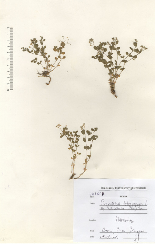 - Polycarpon tetraphyllum L. subsp. alsinifolium (Biv.) Ball.