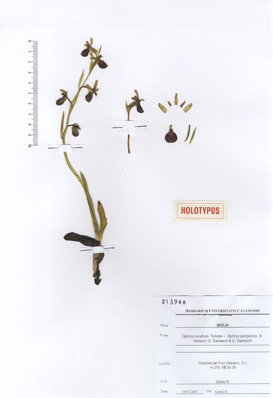 - Ophrys exaltata Tenore X Ophrys garganica (E. Nelson) O. Danesch & E. Danesch