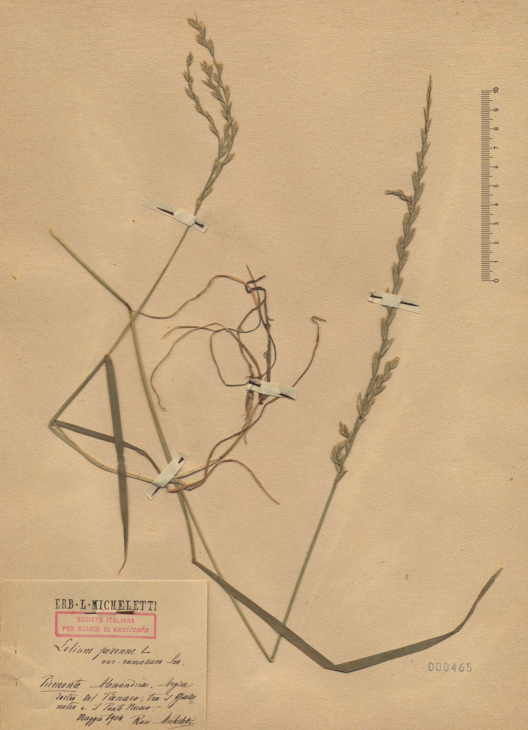 - Lolium perenne var. ramosum Sm. Argine destro del Tanaro, tra gazometro ed il Ponte Nuovo.